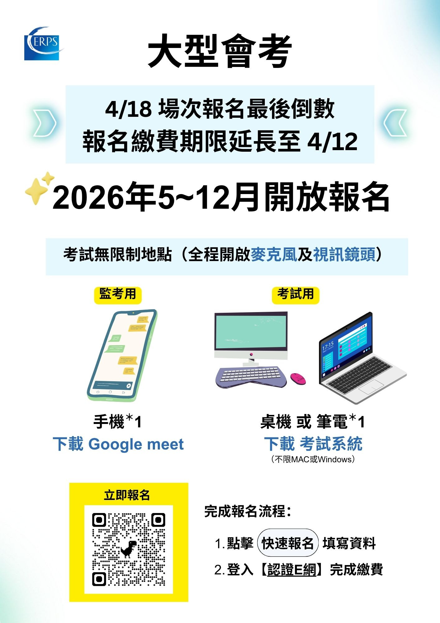 2026 年 5 至 12 月場次已同步開放報名,考生可依個人時程彈性安排🤩